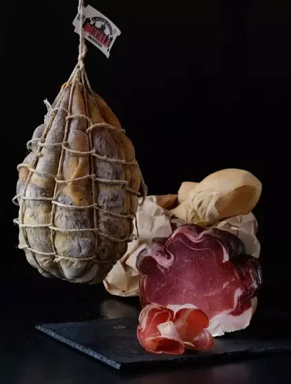 Il Fiocchetto di Prosciutto è una prelibatezza artigianale emiliana, stagionata oltre 6 mesi nelle storiche cantine del Salumificio Ducale. Ottenuto dalla parte più magra della coscia suina, è dolce, magro e profumato, lavorato a mano come il culatello e legato tradizionalmente in corda per conservarne tutto l’aroma.
