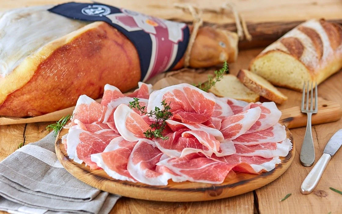 Il Prosciutto di Parma DOP 24 mesi disossato è un'eccellenza della linea Cantina di Umberto e Rosa 1922, dal sapore dolce e delicato. Stagionato naturalmente sulle colline di Langhirano, è realizzato senza conservanti, secondo tradizione. Morbido, profumato e dal gusto inconfondibile, è perfetto per ogni occasione gourmet.